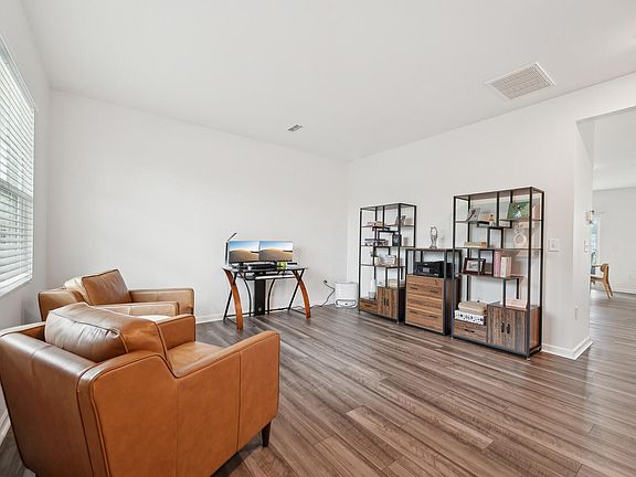 This beautifully maintained, modern 2-story home is perfectly situated on a desirable corner lot steps away from the neighborhood pool, playground, dog park, and cabana with fire pit. The 1st floor features a guest bedroom with full bath, versatile Office space that can easily be used as a Dining or Living Room, and upgraded LVP flooring throughout most of the main level. The Family Room opens to a spacious eat-in Kitchen embellished with white cabinets, SS appliances, Granite counters, and center island with bar seating. Upstairs, you will find the Primary Suite, large Loft area, and three additional bedrooms each with their own walk-in closets. The Primary Bedroom boasts a huge custom WIC and modern en-suite bath with a walk-in shower featuring a luxurious rain shower head. Outside, the backyard includes a patio perfect for outdoor dining and relaxation. This home is packed with upgrades including a new storm door, updated faucets, new doorknobs and handles, new Kitchen hardware and electric range with double oven, upgraded paint, and so much more!