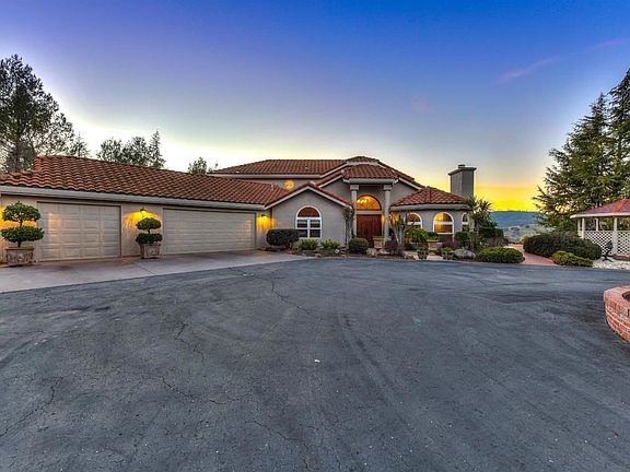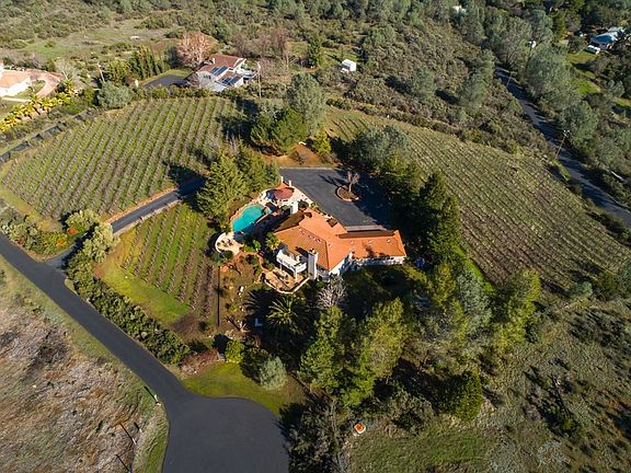 Breathtaking private estate on 3 acres with VIEWS of Folsom Lake & amazing sunsets! Perfect place to work from home. Approximately 2 acres of vineyard surround the home currently but the property is extremely usable for animals, building a 2nd living quarters or whatever you desire. Sparkling built in pool, spa & gazebo perfect for entertaining! Private gated entrance. Custom built home features 2,884 sq.ft. of living space, 3 bedrooms & 2.5 baths. Spanish tile & wood flooring throughout downstairs. 2 cozy wood burning fireplaces. Formal living & dining rooms Enjoy the view from your kitchen featuring granite tile counters, gas cooktop, trash compactor, dishwasher, oven & built in microwave. Family room with wet bar & fireplace. Downstairs den/office could be used as guest room. Large master suite upstairs with balcony to enjoy the view. Large secondary bedrooms. Large 3 car garage. Spacious downstairs laundry with sink & cabinets. Located within top rated school district.