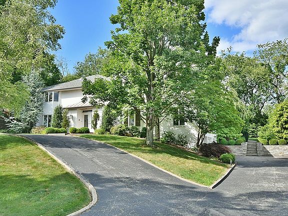Executive Deerfield Manor Home. Two Story Entrance with Curved Staircase. Formal Living and Dining Rooms. Light, Bright and Well Equipped Kitchen Opens to Break-fast area and see thru Fireplace and family room. Multiple doors lead to the beautiful outdoor space including an in ground pool, patio areas, 3 season room, and landscaping. Owners suite with fireplace, jetted tub, walk-in closets. 4 Beds share 2 jack & jill baths on this floor. Main floor has laundry, private suite with full bath, 2 half baths. finished game room with sauna, 3 car garage.