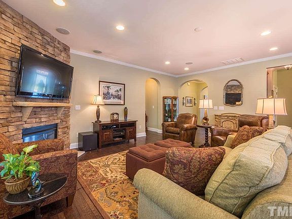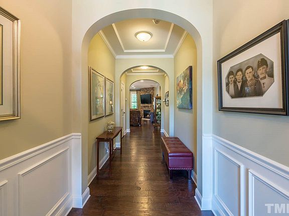 MULTIPLE OFFERS- Immaculate Ranch home w/3-car garage on a premium wooded lot in Apex. Tens of thousands in upgrades sets it apart! Hrdwds thruout main living area. Plantation blinds on 1st. Gourmet kitchen has upgraded cabinets, quartz, SS appliances, island, WI Pantry, tile BS. 3 bdrms down including lrge mstr suite w/coffered ceiling, WI closet, & retreat bth. Lrg bonus & 4th bdrm up. Scrned porch & custom patio overlooks the priv & wooded yrd. Pristine garage w/epoxy flr, tanklss H20 htr,