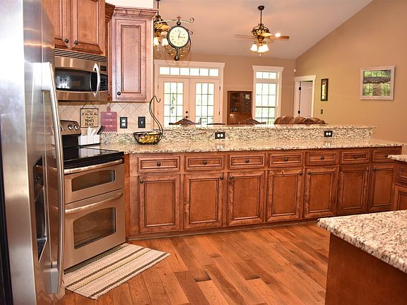 - Kitchen: Bar, Counter Tops-Granite, Floors-Hardwood, Cabinets-Stained
