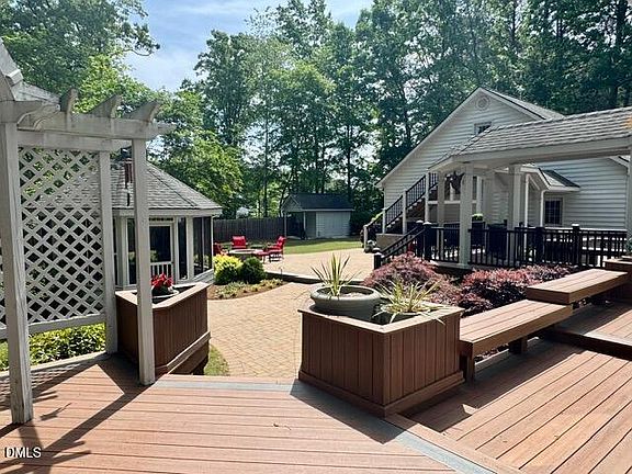 LOCATION!! Experience this stunning home located on a professionally landscaped 1-acre lot, less than 15 minutes from downtown Raleigh. This 3,200+ sq ft home features 3 bedrooms, 2.5 baths, 2 additional bonus rooms, a large dining room, a generous-sized family room, and an office. It boasts a huge 3-car garage and not one, but two dedicated workshop spaces! Meticulously maintained, this home offers an unparalleled living experience. The backyard is a secluded oasis, complete with a screened gazebo, elaborate patio areas, and a firepit. Inside, the warm glow of hardwood floors enhances the large dining room with a wood-burning fireplace, the office, and a spacious kitchen. The large family room is perfect for gatherings and leads to a finished bonus room. Upstairs, you'll find three spacious bedrooms with ample closet space and two updated full baths. The primary bedroom features his and hers closets, separate vanities, and a large walk-in shower. For added convenience, the laundry room is also located on the second floor. The third floor offers another finished bonus room and plenty of walk-in storage. Beyond the main living areas, there is over 1,400 sq ft of well-designed space, ideal for hobbies or storing recreational equipment. The oversized three-car garage provides ample space for larger vehicles. One unique feature of this property is the heated and cooled workshop, which is equipped with shelving, electricity, dust extraction, an air ventilation system, and a TV. There's also an additional large workspace located above the garage, and a separate 10x12 shed perfect for lawn and gardening equipment. This home also offers peace of mind with a very well-maintained private well and septic system, as well as a whole-house generator fueled by propane. And no city taxes! All windows (except skylights) were replaced in 2022 with Anderson Low E windows and the limited warranty is transferrable. The private well delivers fresh water and the home is equipped with both an iron removal system and a reverse osmosis drinking water system. This property is a true gem, offering a mature, landscaped lot with outstanding outdoor spaces, unique character, and exceptional convenience.