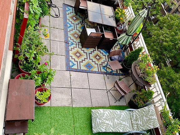 Gem of an apartment for lease/sublet! Large 1 bedroom 1 bath featuring new renovations in the kitchen and bath + 700 sq ft PRIVATE terrace. 3 month at $3,550 or 16 month lease with 2 months free (net $3,550). Waterfront view from the terrace of East River, Long Island City (Happy to discuss leaving any outdoor furniture and plants). Biggest terrace in the building, super private, wonderful for working outside, exercising, gardening, entertaining outdoor. Includes outdoor storage shed, built-in bookshelf, 10 window boxes, and custom mural. Large windows in every room including bathroom/kitchen (very important for WFH). Really tall ceilings and a built-in bookcase, long hallway between the living room and bedroom with lots of closet space. Easy recycling, shipping, and moving facilities (the front desk even helps you print), private Gym in the building (only $22/month and scheduled for private use), on-site Bike Room for storage, 24-hour Concierge Staff and Valet are here to attend to anything you might need. 6 min walk to the most beautiful part of Central Park, just north of Jacqueline Onassis Reservoir and just south of the Central Park's Conservatory Garden, Metropolitan Museum of Art, Guggenheim, Neue Gallery 6 train (at 96th and Lexington) - 1 min walk /Q Train (96th and 2nd Ave) - 5 min walk.