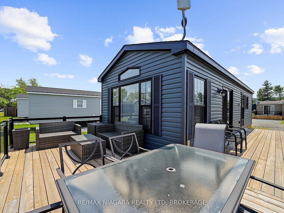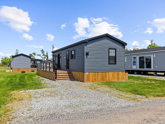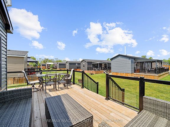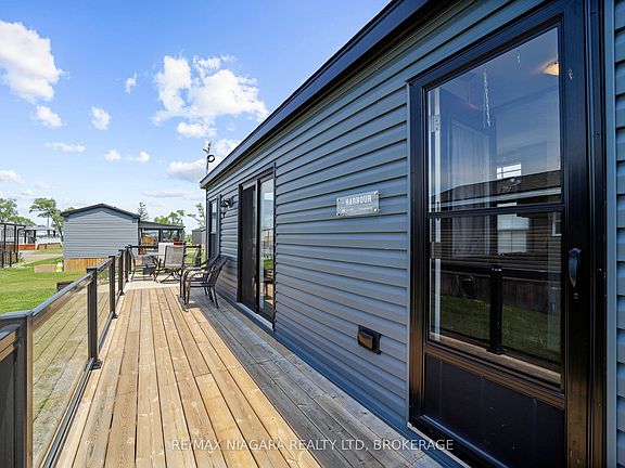 Welcome to Vine Ridge Resorts, Unit 210 in beautiful Niagara-on-the-Lake! Just a short walk to the Niagara River Parkway and only a 10-minute drive to historic Old Town, this 2-bedroom vacation home is the perfect getaway. The open-concept layout features vaulted ceilings, a bright and spacious living area, and a modern kitchen with breakfast island. Two generous bedrooms and a pristine 4-piece bath complete the interior. All indoor and outdoor furnishings and décor are brand new and included with the home, making it truly move-in ready. Resort amenities are second to none, including a 4,000 sq. ft. splash pool, heated saltwater pool, multi-sport court, horseshoe pit, beach volleyball, playground, and on-site coin laundry. Park fees are $8,999 annually and include water/sewage, electricity, lawn maintenance, garbage removal, WiFi in the Welcome Centre, Kidz Klub, and access to all facilities and scheduled activities throughout the season. Owners are responsible for propane and insurance. Immediate possession available. Priced to sell!