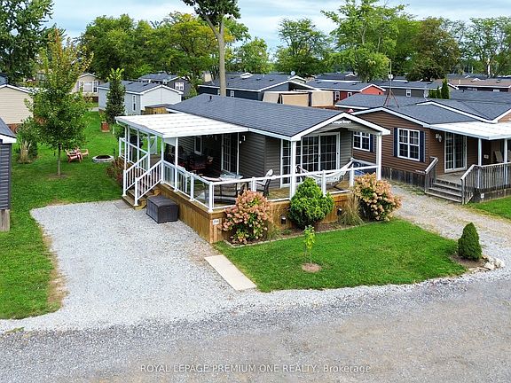 Welcome to Vine Ridge Resort in beautiful, historic Niagara-on-the-Lake. The ultimate playground just south of the GTA. Resort cottage living with easy access to Niagara Falls, Lake Ontario, Casinos, Shopping, Golf Courses, Wineries, top restaurants, US border, theme/water parks, beaches, and endless nature trails. This park model cottage has only had 1 owner, never been rented, and been fully maintained and updated since day 1. Mature trees and landscaping have been added to this site for additional aesthetics privacy. This 2-bedroom model includes a beautiful wrap around deck with 2 overhang roofs to protect from the elements and maximize enjoyment on summer nights. The interior is breath taking with the master bedroom having a walk-in closet and the second bedroom having bunk beds. Upgraded counter tops, prewired for surround sound in living room, oversized lot/backyard, and quiet resort location are ideal features to add to your enjoyment. Maintenance and Taxes Are $8490.00 Plus HST Yearly.