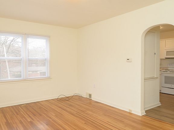 **Available March 15th, 2020** This charming 2 bedroom, 1 bathroom, and 1 car garage home is located on a spacious corner lot with a full unfinished basement! Hardwood floors throughout and recently remodeled kitchen and bathroom! The kitchen features an oven/stove, microwave, and refrigerator. Washer and dryer hookups located in the basement. Tenant is responsible for all utilities.