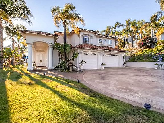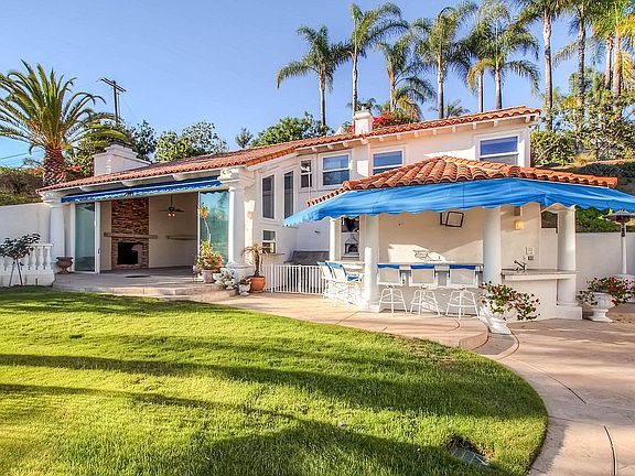 Resort Style Living! Beautiful Mediterranean Home offering 4 bedrooms and 3 full baths! Relax by your private salt water pool with baja step and overflowing spa! Updated pool/spa equipment, automated Easy-Touch system with indoor controller! Pool and spa fully fenced for safety! Outdoor wood burning fireplace and cabana! Full bathroom for outdoor guests! Spacious yard, beautifully manicured landscape with the perfect area to Play and Entertain! Mountain and city views that go for miles! Large Pavilion with granite counter tops and stainless steel appliances including a Viking grill and convection oven, four burner stove top, dishwasher, refrigerator and brick pizza oven for Entertaining and more! Expansive guest house with a tall GREAT ROOM and accordion-style Fleetwood glass doors! Floor to ceiling fireplace with overhead fans, extra room which can be used for a den, workout room with stackable washer/dryer! Large bedroom, full bath, kitchenette complete this amazing guest house! Spacious kitchen with breakfast bar and walk-in pantry! First floor bedroom and full bathroom! Master Bedroom en-suite featuring a private balcony, fireplace and wet bar with refrigerator! Master Bath with dual sinks, deep tub, large walk-in closet, dual shower heads! Swarovski crystal light fixtures! High ceilings and lots of windows to provide plenty of natural light! Granite counter tops throughout! Retractable awnings to provide the perfect shade when needed! Intercom and security system included! . Multiple windows for additional light and breeze! Tree grove to include Fig, Loquat, Mango, Mandarin orange, Pomegranate and Olive! Small greenhouse and shed located up behind guest house! Enjoy ample ocean breezes, one of the best climates around and Views for miles! Close to shopping, restaurants and Hwy 76!