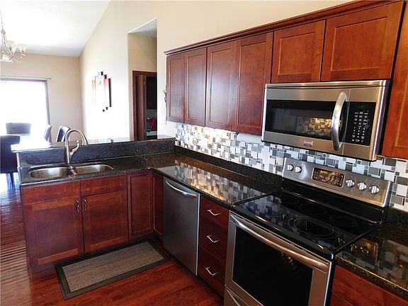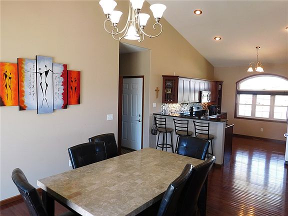 Large walk-out Ranch on a half acre backing up to a pond and fields. This 5 bedroom, 3 bath home has an open floor plan with tons of space indoors and out. On the main floor you'll find: a master with a walk-in closet, tiled shower and Jacuzzi tub, and dual vanities. The kitchen has granite counters, touch censored faucet, and maple cabinets. Washer/Dryer Room, and 2 spare bedrooms, full bath, and a large maintenance free deck. The living room, dining area, and kitchen are all open to each other with 13' cathedral ceilings. The lower level features 2 bedrooms, a full bath, 2 storage rooms, a large rec room/home theatre with pool table, and a walk-out patio. Throughout the home you'll find cherry hardwood floors, tiled bathrooms, and carpeted bedrooms all of which have central vac and kick-sweeps. The outside features an oversized 3 car garage, cultured stone front, and tiled yard (dry basement) backing up to a 2+ acre stocked pond with shared ownership. Call for your tour!