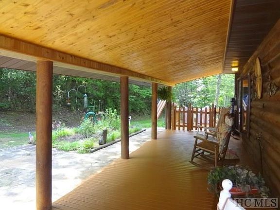 The true Epitome of a Log Cabin in the Mountains! Long Range Views, Relaxing Stream, Pond and Cascading Rock Water Feature Designed and Built by the Owner - Fed by a Spring. Original Owners started from scratch and sculpted this Gorgeous, Landscaped Property into what you see today. Easy Drive Up Access w/no steps into main level, Driveway to main & lower levels, plenty of parking. Very well maintained w/Huge Porches, Front is 40' X 9', Back is 40' X 10. Open Deck runs the width of this home and overlooks the Pond. 2 Story Living and Dining Area, Massive Rock Fireplace. Large Kitchen with awesome Breakfast Bar and Huge Serving Counter. Open Floor Plan for Entertaining. 2 Bedrooms on Main, Master Suite Upper Level with Loft. Hardwood Floors LR, DR & Kitchen, Cedar T & G Walls. Unfinished Basement is 1120 SF, 2 Garage Doors, Workshop area w/Workbench. Den/Study listed above is the Large Loft Area currently used as an Office. Property is very gentle and mostly usable. Hiking Trails in place to enjoy all Nature has to offer. Most Furniture is Negotiable. Possible Owner Financing. Directions: Hwy. 64 East, Highlands Road, 6 miles, turn left Corrundum Hill Road, Go 1 mile, continue straight on to Mountain Laurel Drive. Go 1.5 miles, home will be on your right where you see 2 Red Wagon Wheels. Nearly level Driveway, lots of turnaround and parking space.