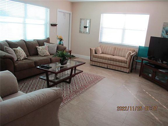 Own this spacious two bedroom, one- and one-half bath in quiet east Hollywood. Second floor, corner unit with no elevator. Tastefully furnished turnkey. Kitchen updated with granite countertops. Baths updated as well. New a/c Nov 2022. tankless water heater. Open floor plan. Light and bright with impact windows in living room. Ample closet space. Comfortable queen bed set in main bedroom and twins in guest. Immaculate condition. Additional storage.
