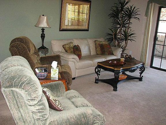 Free standing single level condo has no common walls with neighbor; Most desirable floor plan offers an open concept split plan with two bedrooms, two full baths and a two car garage plus a fenced patio area; Tastefully decorated, updated and maintained; Bay window dining area, breakfast bar, gas fireplace, pot shelves and niches; Attractive tile flooring in traffic areas and kitchen; There is patio access from great room and master bedroom; Laundry room with upper and lower cabinets; This home is turn key from dishes to bedding and furniture; Inventory list available upon request; Very special condo offers great full time living or perfect for lock and leave lifestyle.