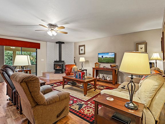Great mountain views from this spacious home on a cul-de-sac in Alpine Heights! This 3 bedroom, 2 bathroom home features 1,751 sq. ft., and a 2 car garage. The living room has beautiful wood floors and a pellet stove for additional efficient heat in Payson's cooler months. The kitchen has plenty of counter & cabinet space with a large breakfast bar and a pantry. The master bedroom features private access to the covered deck, and a full bathroom with an oversized vanity. Accessed from the backyard there is a basement with ample storage and a workshop. The backyard is fenced and has plenty of mature trees for privacy. You'll love the wrap around covered deck perfect for entertaining, enjoying the views and beautiful weather in Payson.