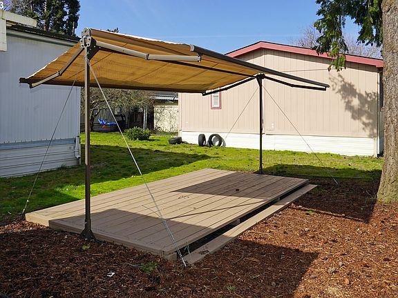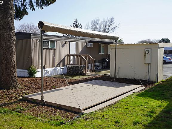 BEAUTIFULLY REMODELED MOVE IN READY SINGLE-WIDE ON DOUBLE-WIDE LOT! Home needs a few fixes but is a great deal! Giant covered shaded patio & 2 decks! All of the following updates: expensive rubber roof, laminate hardwood floors, vinyl windows, counter tops, new water heater, light fixtures, colonial doors & trim, built-in shelving, security system, paint - in & out, air conditioning, more! Living rm w/x-tall ceiling & tip out for double wide sizing. Lovely kitchen w/gas range & large windows. Completely remodeled bathroom. Great park & location!