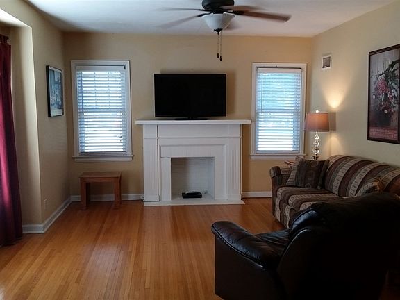 Charming home located on a corner lot in desirable Riverside neighborhood. Home features 2 spacious bedrooms, 1 full bathroom with nice built-in linens cabinet. Living room with fireplace, updated kitchen with tile flooring. Sunroom connects garage to house, Hardwood floors throughout, unfinished full basement, private backyard patio with stamped concrete and front includes long deck which is pleasant for late afternoon/evening sitting. All appliances stay!