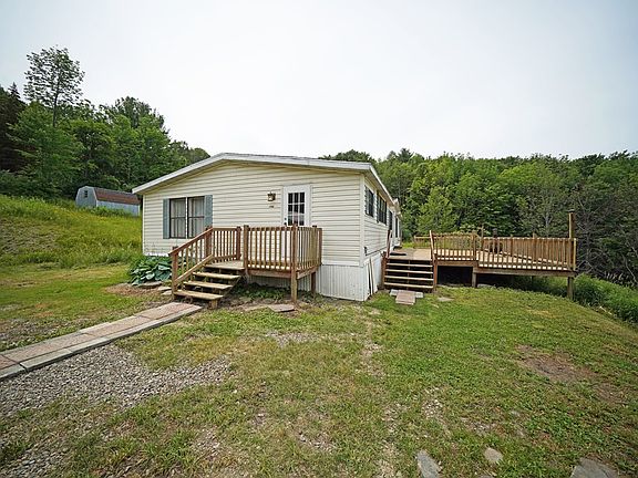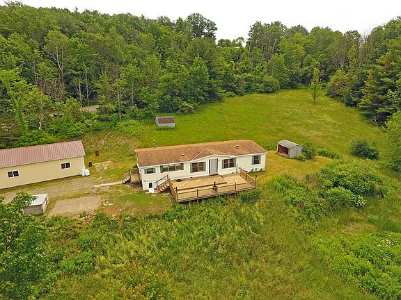 This fantastic home and property is perfect for folks who value privacy, scenic vistas, a 24' x 36' pole barn / garage, a pond and a home with a large open feel. Three nice sized bedrooms especially the owners suite. Semi updated feel. Brand new carpet in all bedrooms and newer laminate throughout. Surround yourself with nothing but open and wooded land. Electric run for hot-tub on the deck. Flat spot for pool looking down to left from the deck. Affordable country living clean and ready to move into. Coal Stove, Furnace and back up propane heat.New High Speed Internet with Haefele Connect