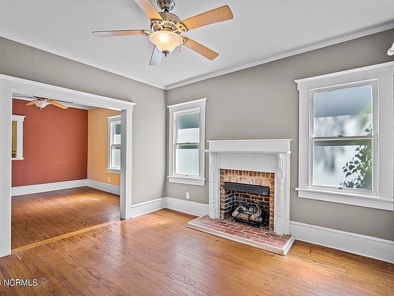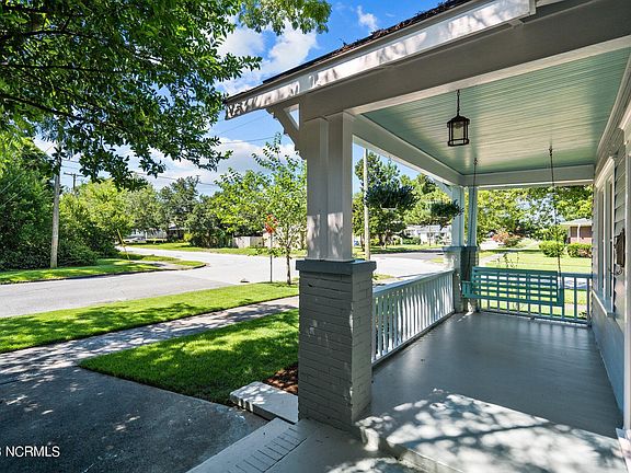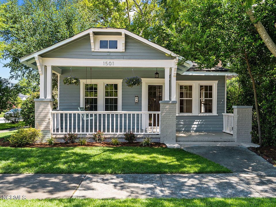 This beautifully updated 1920s bungalow exudes character and charm in the heart of downtown Wilmington. Historic appeal and modern conveniences merge flawlessly in this 2 bedroom, 1 full bathroom home with 860 square feet. Nestled on a corner lot with a fenced-in backyard, you can enjoy the tranquility of swinging on your covered front porch before heading out to explore all that downtown Wilmington offers. Premium home highlights include original hardwood floors, crown molding, a brick gas fireplace, and plenty of natural light. The updated kitchen features newer tile floors and counters, a gas range, a dishwasher, and sizable upper and lower cabinets for a designated pantry. Both bedrooms feature hardwood floors and ceiling fans. The bathroom boasts tile floors and a beautiful clawfoot bathtub with shower enclosure. A laundry room is conveniently located off the kitchen with access to the backyard. In addition to the cozy interior, the fenced-in backyard is equally as charming with the lovely brick patio, sizable shed, shaded areas, and ample privacy. The Cross City Trail runs along 15th Street on the left side of the home, so you'll enjoy a convenient bike and pedestrian path. This location is only two blocks to the Castle Street Arts District with its eclectic shopping, dining, and entertainment, and only a short stroll to the award-winning Cape Fear Riverwalk. You'll fall in love with the character and charm this historic bungalow offers - call today to make it yours!