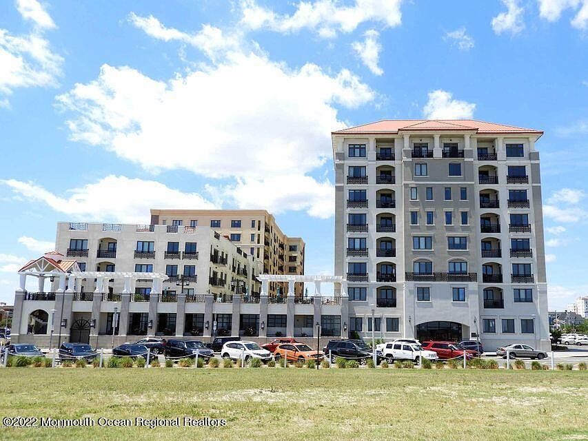 Enjoy living at the beach in this modern luxury oceanfront complex. Just steps away from the Asbury Park beach, boardwalk and ocean this light filled corner 2 bed/2 bath corner penthouse features amazing wrap around views of sunsets as well as faces south to view a city and park scape, hardwood floors thru out, high ceilings, lots of closet space, entertaining open kitchen with breakfast/buffet bar, private living room, spacious den, guest bedroom with nearby guest bathroom, in unit w/d, large primary bedroom with en suite bathroom that boasts double sink vanity and deep soaking tub/shower. Unit comes with extra storage in private storage closet, deeded/assigned parking spot well located on 1st floor. More... Complex amenities abound with a well equipped fitness center, beautiful open inviting lobby w/ common areas & meeting room for work or play, 24 hour concierge, on site management, media room with a kitchen that can be reserved for events, ocean front pool, jacuzzi and large sunning patio with sweeping ocean views, covered and secured assigned parking in on site garage. 2 blocks to shops, restaurants, galleries and soon to be exclusive St. Laurent Social Club/Heirloom Kitchen (formerly Hotel Tides), plus so much more. Start living your best life today in this wonderful waterfront complex while enjoying one of the most exciting beachfront cities along the East coast!