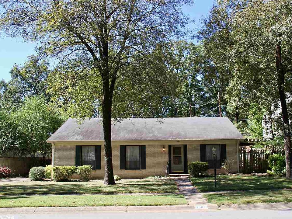 One-level home on flat lot near neighborhood park, pool & tennis courts. It's bigger than it looks from the street & includes formal living & dining rooms, eat-in kitchen, den with fireplace, 4 bed & 3 bath; 2 bedrooms have private baths. Secluded patio with fully fenced yard & large storage building/workshop; low maintenance exterior with brick & siding. Sold AS-IS at this price. Agents, see remarks.