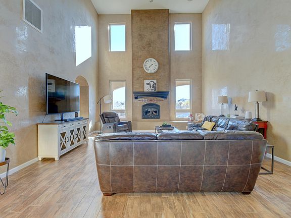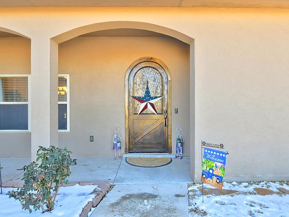 Experience the epitome of comfort and elegance in this custom private retreat that is on a cul-de-sac with breathtaking views of the Sandia & Jemez Mountains. Sprawling across 2.65 acres, indulge in abundant space for all your recreational pursuits, complemented by a built-in irrigation system for the possibility of vineyards, lavender, or your choice! This spacious home features 5 generously-sized bedrooms, 3 full baths, plus an office with an exterior door, separate dining room wide doorways, cathedral ceilings and a custom kitchen boasting beautiful cabinetry, granite countertops, & a cooktop island. There is ample storage space, including a 3 car garage and 2 attics, one in the garage & one in the house, that adds to the practicality of this exceptional property. Bring your horse!
