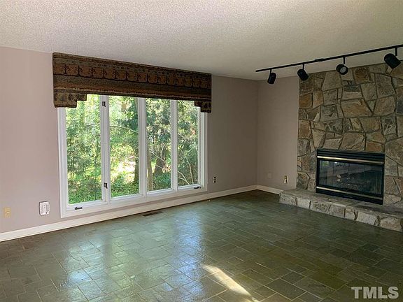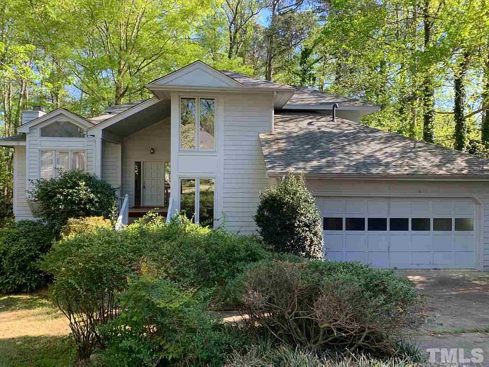Amazing value in popular Stonehenge area of N. Raleigh! Soft contemporary nestled on private cul-de-sac home site. This floor plan is perfect for entertaining w/two living spaces both with fireplaces!. Large kitchen overlooking the lush backdrop of trees. First floor guest room. Expansive owner's retreat! Two decks! Home is priced so buyer can update and make necessary repairs. Awesome location to shopping, dining, Whole Foods, 540 & more!