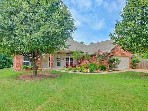 This home is impeccably maintained; 3 Bed w/office or can be used as 4th; 2 bath; 2 car garage, This home offers large windows at back of home; wood tile flooring; roman shades; solar tube lighting in kitchen & Hall to add lots of natural light; dog run/play area; pantry; ss appliances; crown molding; double vanity in master with separate makeup area separating the double sinks; australian closet; jetted tub; separate shower; plenty of storage in halls; large closets in secondary bdrms.; spice rack in kitchen, secondary bath also has double vanity; and storm cellar to boot in the garage; there's a covered patio with added deck offering a gas line grill for outdoor living and separate lower deck area; this home backs to trees and there is serenity which can be found; sit and relax in the evening and you feel your living in the country. Easy highway access and 15 mins to Norman; call today for your personal showing.
