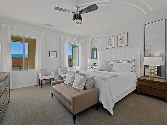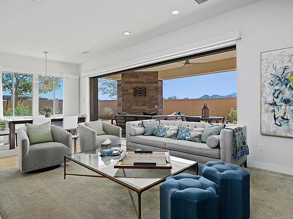 If panoramic mountain views and privacy are what you seek, allow me to introduce 1501 Retreat Circle. Constructed in 2018, this modern Plan One in The Retreat at Desert Willow, with perks and direct access to Desert Willow Golf Resort, features many upgrades including porcelain plank floors, ''Calacatta'' quartz countertops, Bosch appliances, elevated window coverings, and more. Enjoy two-bedroom suites plus an office/den which overlooks the gated entry courtyard, along with three-bathrooms and a two-car attached garage. Open concept indoor-outdoor living at its best! Open the Fleetwood ''disappearing'' sliding doors to reveal the spacious, covered patio with built-in gas fireplace, flatscreen television hookup, and unobstructed panoramic views of the southern mountain range. Located just steps from the clubhouse, fitness center, resort pool, lap pool, and the private access gate which leads you along a path to the award-winning Desert Willow Golf Resort, offering two championship courses and the well-regarded The Terrace restaurant. HOA dues include amenities such as Cable/Internet/WIFI/Water and golf/dining perks at DW Golf Resort (See MLS attachments for details.) If you are dreaming of newer-construction with majestic mountain views and a California resort lifestyle, this is it!