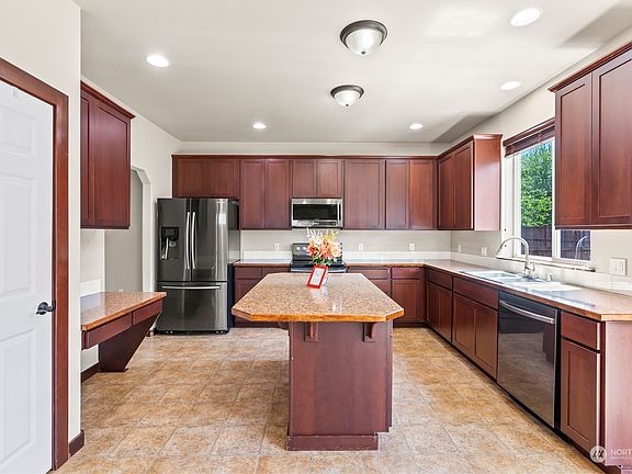 Space for everyone w/ this 2 story home at the Rivers Edge community in Orting. This 4 bedroom home could easily be 6 if wanted, including one w/ a mountain view. The office and media room has flexibility for anyone needing more space. This property also gives you a huge kitchen with island, living room, dining room, fenced back yard, & RV parking. You get 2 and a half bathrooms, a separate laundry room, & lots of storage. Rivers Edge is a great neighborhood w/ a walking trail just outside of the community w/ access into downtown Orting and the foothills trail. The small town feel of Orting is embellished by seasonal farmers markets & parades. The restaurants, shopping, town park, & amazing views of Mt Rainier make you feel right at home.