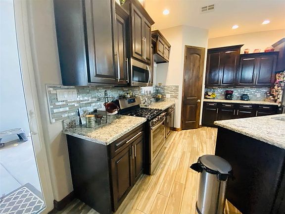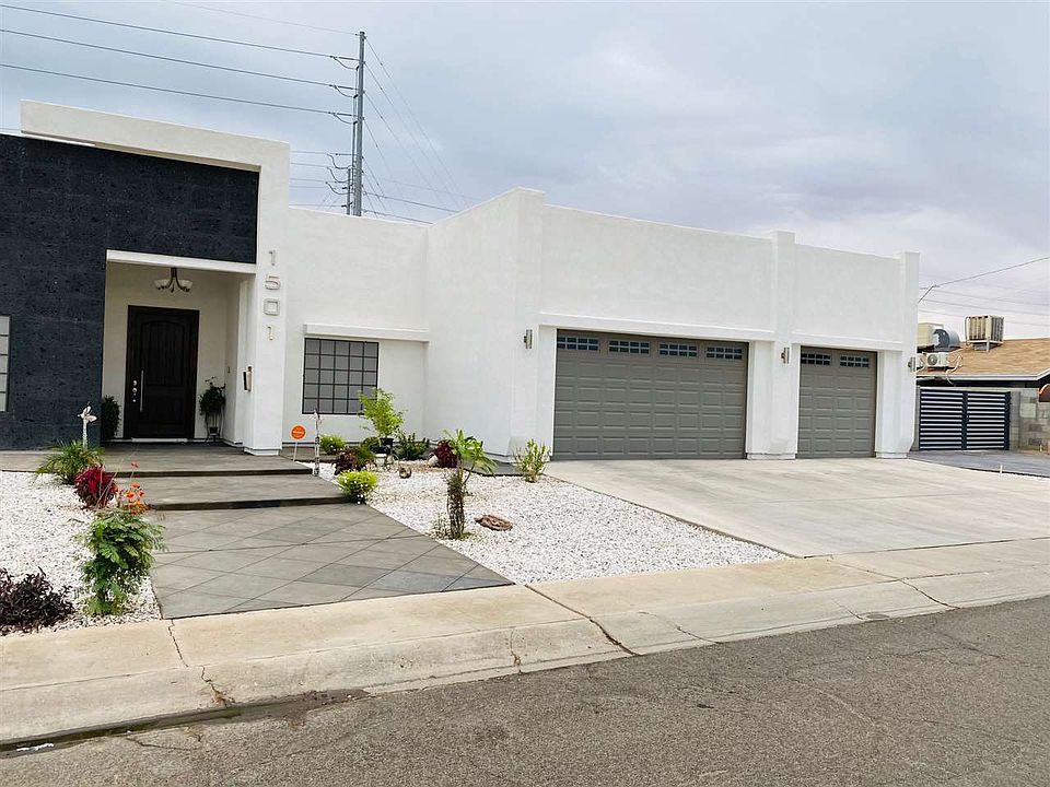WOW!! This contemporary style home is ready for a new family. This 4 bedrooms, 2 beautiful bathrooms, all 10' ceilings throughout including 8' tall doors, Open floor plan. Kitchen features all granite counter tops, beautiful backsplash and all tile flooring. All stainless steel appliances. The three car garage includes all 10' ceiling and 8' garage doors to accommodate a tall/lifted truck or SUV. Huge corner lot 10,996 with plenty of room for a future pool. Close to everything medical offices, schools, etc.