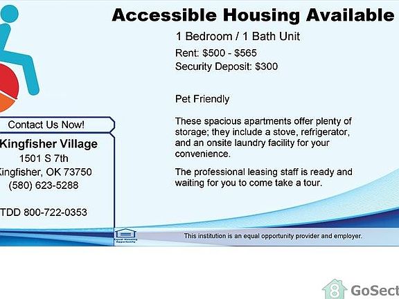 This 836 square foot townhome home has 2 bedrooms and 1.0 bathrooms. This home is located at 1501 S 7th St, Kingfisher, OK 73750.