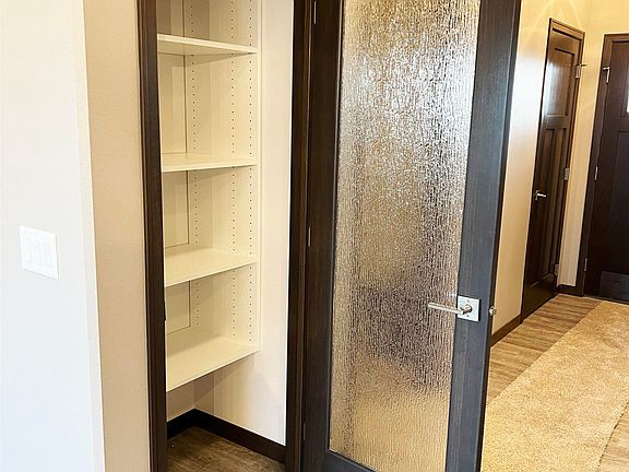 The Meadowland Villas in western Sioux Falls offers low maintenance, single-level living with the latest ranch townhome design – an efficient floor plan featuring an open layout and split bedrooms. This townhome is included in the HOA which provides lawn care, snow removal, and garbage services. Luxury vinyl plank flooring in extra wide soft grey “Timberland” runs through the main living area. The large laundry room features a custom built-in bench and storage. The kitchen features beautiful custom Cherry cabinets in “Slate” with ample storage throughout, subway style tile backsplash, and a separate pantry closet full of adjustable shelving. The private patio is located just off the kitchen, dining room, and living room providing immediate and central access to your backyard with sod and sprinklers. The master suite includes 10ft step up ceilings, private bathroom with a double vanity, and extra large walk-in closet with custom shelving.