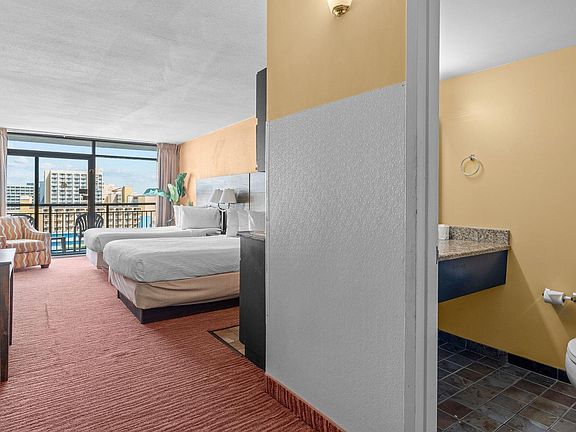 HUGE REDUCTION! MOTIVATED SELLER! OWNER FINANCE available. Great terms! Thinking about a vacation place or investment opportunity at the beach? This Landmark Resort's fully furnished efficiency unit would perfectly accomplish your goals. It is conveniently located and has everything you and your guest need. You will find a well-equipped kitchenette with a refrigerator, microwave, coffee maker, granite countertops, and a cozy dinette area. The unit has two queen-sized beds, a wall-mounted TV, and a comfortable balcony with great ocean views. It is a perfect time to buy and put your personal touch there.  At Landmark Resort, you?ll have access to an array of amenities, including the H2OASIS Waterpark, indoor & outdoor pools, lazy rivers, hot tubs, a sauna, waterfalls, a game room, mini golf, and a fitness center. Enjoy on-site dining at the restaurant, lounge, pool bar, or ice cream parlor, and take advantage of the gift shop, business center, and laundry facilities for added convenience. Plus, the indoor crosswalk provides easy access to the parking garage. Located on Ocean Boulevard, you're just moments away from the Myrtle Beach Boardwalk, SkyWheel, and Family Kingdom Amusement Park, as well as countless shopping, dining, and entertainment options. Plus, the airport is just a short drive away! Imagine waking up to breathtaking ocean views on your private balcony.