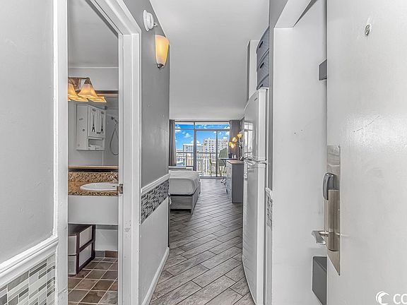 Get ready for your vacation getaway! The Landmark #1217 is an efficiency condo on the south end of Myrtle Beach. This condo provides a breathtaking view to the north and of the Atlantic Ocean as you open the door. This condo boasts upgraded luxury vinyl flooring, granite counter in the kitchenette area, a full size refrigerator, and tasteful modern décor and furniture. A chair in the sitting area also pulls out into a bed. Enjoy all The Landmark has to offer with an oceanfront pool, indoor pool, lazy river, waterpark, 9-hole putt putt course, dining/ bar onsite, laundry, fitness room, arcade, gift shop and much more! Centrally located in Myrtle Beach near all area attractions, shopping, local eateries, and a short drive to Myrtle Beach International Airport. This building is highly sought after for investment properties or personal use. Check this condo out today! It won't last long! All measurements are not guaranteed, buyer responsible for verifying.