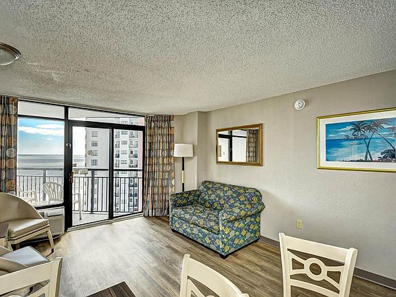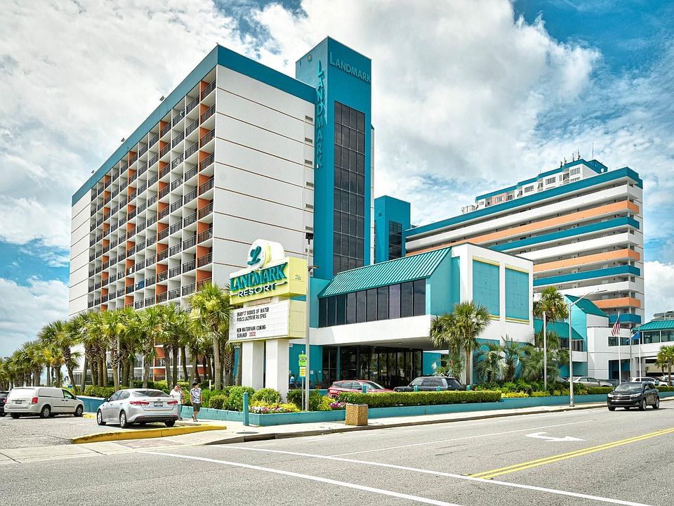 Only a few are comparable to this "Premier rated" top floor best ocean view unit with rare layout of not 1, but 2 private Deluxe angle balconies.  The primary bedroom with 2 Full X Long size beds has beautiful ocean views from a private balcony.  The living room with the 2nd balcony has a Murphy bed with a new mattress.  Sleeping 6 total. Enjoy the best views and sounds of the ocean while sitting on the one of the balconies or inside looking out through the sliders. Sold fully furnished. New 2024 updates: LVP flooring with base molding, fresh paint, microwave, granite kitchen and bath countertops, and upgraded wood closet shelving in 2 closets. Electric in unit and building insurance included in HOA. New AC in 2023. Landmark Resort offers several amenities including 17 bodies of water and a recently upgraded H2O Oasis Water park with: a 300 ft Lazy River, 3 40 ft water slides, indoor & outdoor pools, hot tubs/spas, indoor kiddie lazy river & swimming area, sauna, and whirlpool.  Other amenities include: on-site laundry, video arcade, fitness room, gift shops, Starbucks, Gazebo Restaurant, Latitudes Lounge, Tipsy Turtle Pool Bar, and Shark Bites snack bar. Centrally located in the heart of 60 miles of white sandy beaches, close to downtown Myrtle Beach and area attractions, shopping, golf, dining, and entertainment.