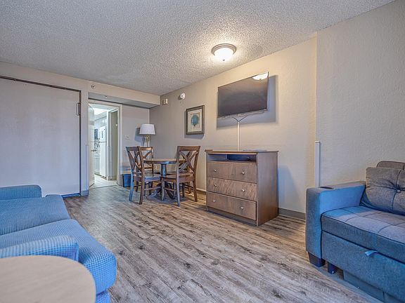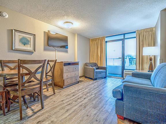 DIRECT OCEANFRONT CONDO at an unbeatable value !!  This 1-bedroom, 1-bathroom condo at the Landmark Resort in Myrtle Beach offers stunning, unobstructed views of the Atlantic from your private balcony. This unit has everything you need for the perfect beach getaway, rental investment, or both.  Step inside to find a thoughtfully designed layout featuring a full kitchen, a cozy dining area with a convenient pull-down Murphy bed, and a unique bathroom setup with a central tub/shower and private vanities on either side—ideal for guests or family convenience. The bedroom is well-appointed, and the living space offers plenty of room to relax after a day in the sun.  Landmark Resort is packed with family-friendly amenities that make it one of Myrtle Beach’s most popular destinations. Enjoy indoor and outdoor pools, a lazy river, fitness center, arcade, and a full laundry facility on the first level. Just across the street, you'll find the H2Oasis waterpark with waterslides and splash zones next to the secure, enclosed parking garage connected via a covered walkway.  Dining is a breeze with multiple on-site options including Latitudes Grill, the Gazebo Restaurant for breakfast, a seasonal poolside bar, snack shack, and the Havana Java Bar proudly serving Starbucks coffee.  This is your chance to own a piece of the oceanfront lifestyle with all the resort amenities, centrally located near Myrtle Beach’s attractions, restaurants, entertainment, and just minutes from the airport. Whether you're looking for a vacation home or an investment property with rental potential, this condo checks all the boxes. Don’t miss it!