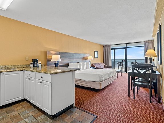 Don't miss this opportunity to own this fully furnished, oceanfront efficiency unit in the highly sought after, Landmark Resort! Featuring aRARE full kitchen with a full size fridge, range, microwave, granite countertops, and a breakfast bar, along with well coordinated furnishings, a king size bed and a pull out sofa for an added sleeping space! Landmark offers top of the line amenities, including indoor and outdoor pools, waterpark, lazy river, exercise room, laundry facilities, onsite dining, and more, all with low HOA fees and great rental potential! Perfectly situated in the heart of Myrtle Beach, close to all of the Grand Strand's finest dining, shopping, golf, andentertainment attractions. Whether you are looking for a vacation get away or an investment opportunity, you won't want to miss this.Schedule your showing today!