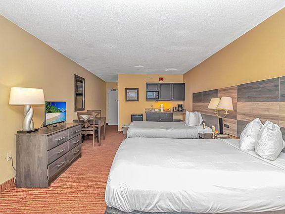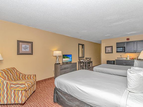 Beautiful efficiency unit at Landmark Resort on the fourth floor. Landmark has all the amenities such as indoor and outdoor pools, lazy rivers, kiddie pools, fitness room, arcade, on-site Starbucks, inside and outside restaurants. Landmark Resort is located in the heart of Myrtle Beach, close to shopping, restaurants, attractions, and the airport!