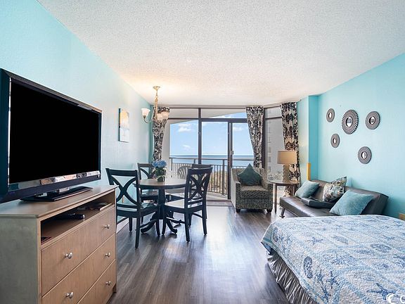 If you're looking for a beachfront vacation spot with breathtaking views, look no further than this stunning condo at the Landmark Resort! This fully furnished 1 bedroom, 1 bathroom unit has everything you need for the perfect beach getaway. The fully equipped kitchen has plenty of storage space for all your snacks and drinks. Plus, there's even a Murphy bed in the living room for those extra visitors! But the real highlight of this condo is the large sized  balcony which is very rare for these condos that offers incredible views of the ocean. The condo has MANY upgrades that have been done within the past year. Brand new LVP flooring throughout the unit giving it a more modern feel, new furniture, new AC and a convenient movable kitchen island for extra counter space when cooking. Another great feature that this unit offers than many others don’t is that this floor has DIRECT access to the parking garage adding EXTRA convenience to your beach days. This condo is a perfect investment property with great rental potential or even just primary residence if you want to live at the beach. Start your day with a cup of coffee while watching the sunrise or wind down after a day of fun in the sun with a relaxing evening on the balcony. And that's not all - the Landmark Resort has an amazing array of amenities to keep you entertained during your stay. You can take a dip in one of the indoor or outdoor pools, float down the lazy river, work up a sweat in the fitness facility, or challenge your family to a game in the game room. Plus, there's even a gift shop, restaurant, and coffee shop on-site for your convenience.