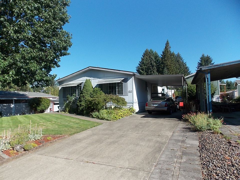 Welcome home to this beautiful 2 bedroom, 2 bath, Skyline. This wonderful home offers approximately 1080 SF of room and its features include large open living room with lots of windows, laminate flooring and eating bar in the dining room, walk in shower in the master bath and walk in tub in the guest bath. Living room measures approximately 13x18', dining room 9x13', master bedroom 13x14' and 2nd bedroom 11x13'. Front deck measures approximately 4x5', rear deck 3.5x8', carport 12x18' and storage building 10x16'. Heat pump. Washer & dryer. Pet Policy: 2 indoor pets, under 20 lbs. Park rent on this unit is approximately $424 per month. If you would like to set an appointment time to see this home, or if you have questions regarding, Listing or Selling your home, give one of our friendly agents a call today at 503-794-1100. We are CMS Homes and Manufactured Housing is our Expertise! 503-794-1100. To see other homes we have listed; please visit our website at www.cmshomes.biz Please DO NOT disturb the seller of this home. If you have questions, give our office a call at 503-794-1100.