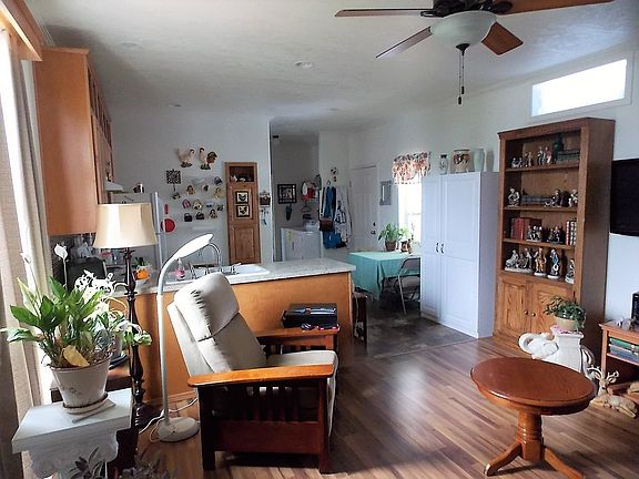 Welcome home to this absolutely beautiful 2 bedroom, 1 bath, 2016 Golden West. This beautiful home is a manufactured home in a park, NO LAND is involved with the sale of this home. This wonderful home offers approximately 720 SF of room and it features an open floor plan with high ceilings, laminate flooring and is tape & textured throughout. Features include paddle fan in the living room, wood cabinetry throughout, pantry in the kitchen, tons of cabinets in the bathroom and washer & dryer hookups. ?Living room measures approximately 11x14', kitchen 9x14', master bedroom 9x14' and 2nd bedroom 8x14'. Front deck measures approximately 4x4', rear deck 4x4', storage building 8x10' and carport 10x17'. ?Pet policy: 2 pets to 20 lbs ea. CMS Homes represents the seller of this home. Please give Bill Page a call with any questions you may have.