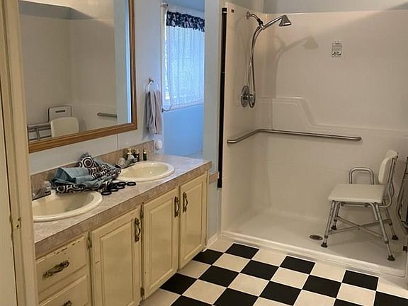 This home has vaulted ceilings, large kitchen, living room, and master bedroom w/en suite. All appliances included as seen in showing. Nice sized lot with deck, garden space, tool shed, covered parking with ramp, close to shopping. Clubhouse. 55+ living.