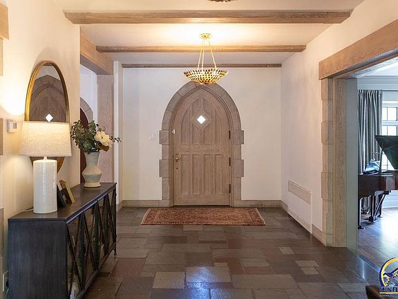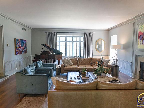 The iconic Topeka home which has become known as the "Modern Manor" is being offered after extensive renovations and updates. Built of block masonry that will stand the test of time, it includes 6 bedrooms and 4 full bathrooms and 3 half bathrooms. The gourmet kitchen was completely gutted and remodeled in 2021. The 40' long space features custom cabinets from "Heart and Home", crystal and quartz countertops, and Wolf sub/zero appliances. The spacious interior features 3 grand fireplaces, 1 in basement speakeasy, 1 in the large formal living room, and one in oak paneled library with vaulted ceilings. Sitting on 2.1 acres the back yard feels more like a home in Hollywood than Topeka. The pool is 60x20 concrete, beautiful Tennessee flagstone walkways, and terraced patios. A 4 car garage and circle drive provide ample off the street parking. Other practical and valuable updates include all new electrical service and HVAC system. This home is one of a kind with a storied past. A magical place to live and ready for its next steward.