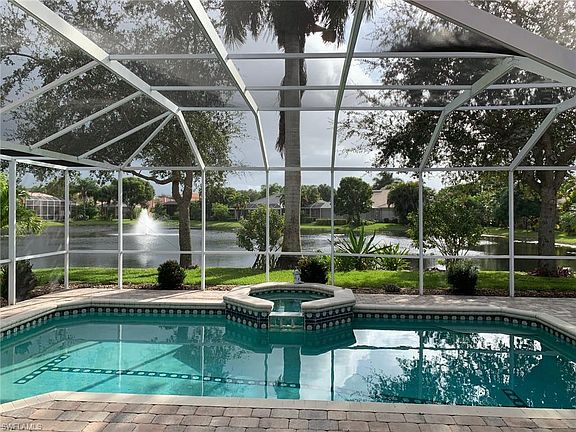 Spacious three bedroom plus den three bath pool and hot tub home with western exposure overlooking pond and fountain. Newer roof, hurricane protection, paver pool deck and driveway. Lot's of 8 foot glass sliders looking out to pool and pond. Enjoy resort amenities and a great Naples location within minutes drive to 4 white sandy award winning beaches.