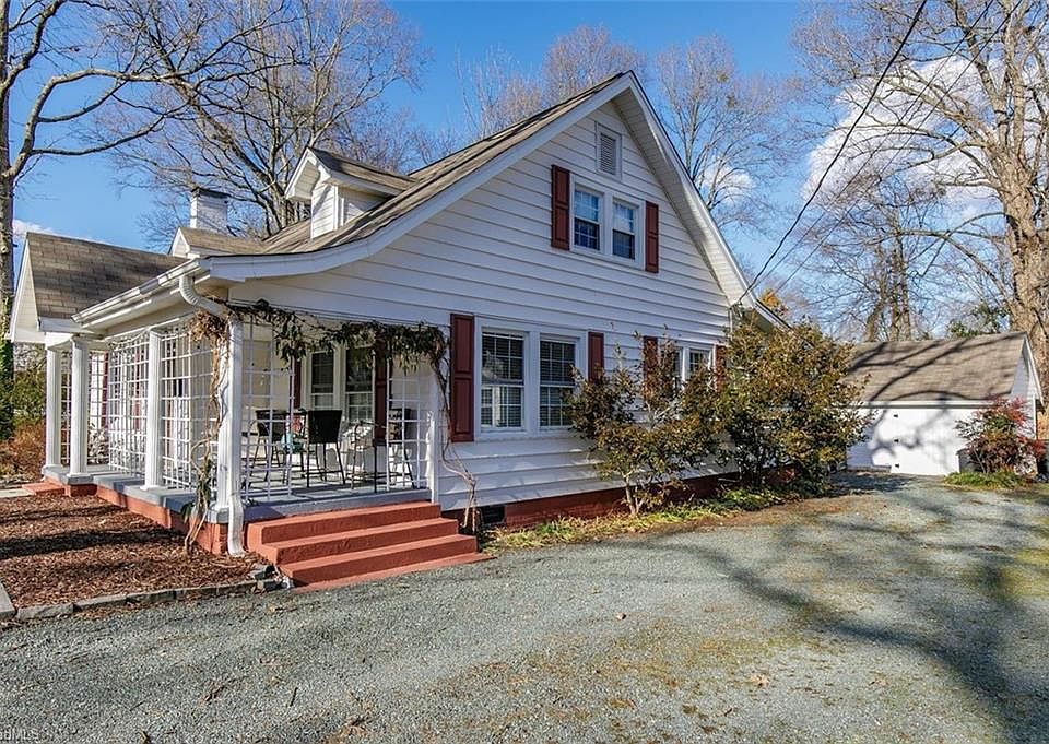 Welcome to this warm and inviting Cape Cod! Loaded with charm and personality! Spacious living room opens into the Dining room will provide an ideal place to gather with family & friends. Original hardwoods throughout most of the house. Kitchen boasts ample cabinets, SS gas range & walk-in pantry off laundry room which includes washer & dryer & 1st flr half bath. 1st floor primary bedroom with ensuite features a large walk-in closet/dressing area. The upstairs living space boasts 500 sf, with 2 bedrooms & a full bath... it's has central heating & air and is a great finished space with lots of closets!!! Ceiling height is just under 7 ft & isn't included in total sq. footage. Love the low maintenance exterior: vinyl siding & vinyl windows & recent roof! Enjoy morning coffee on the covered front porch. Can't beat the location. . . convenient to almost everything. It's within walking distance of Willowbrook Park, the Arboretum and downtown Burlington! Stores, restaurants, I-40/85 & more!