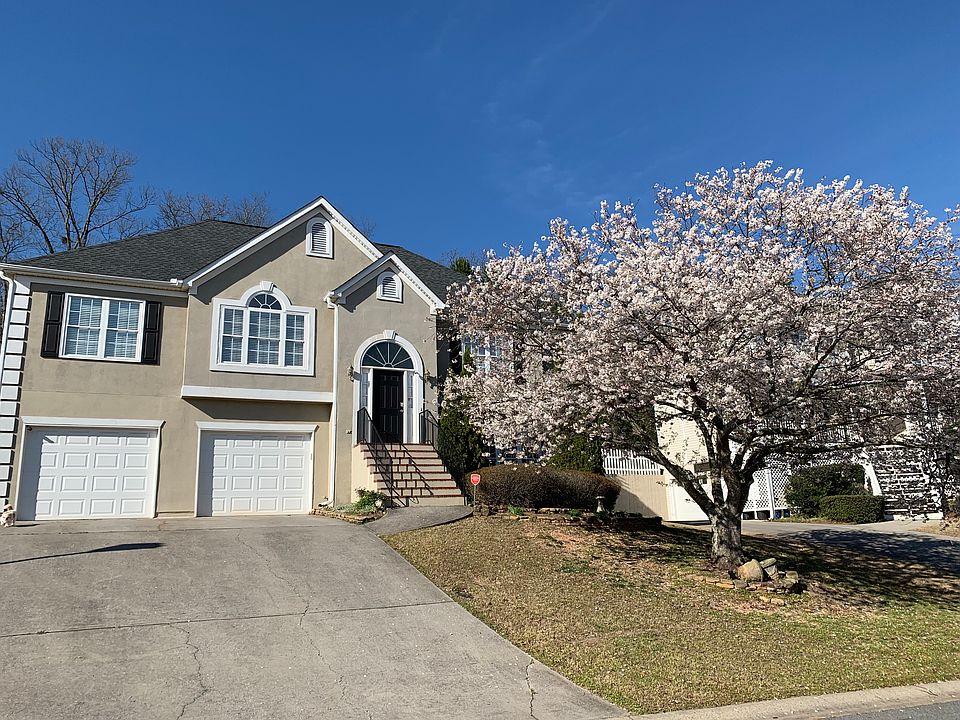 This lovely, split-level home sits atop Blackjack Mtn in East Cobb minutes from I-75 & the new Express Lanes! Expansive living room w/ vaulted ceilings & fireplace opens to eat-in kitchen. Beautifully renovated master bath features double vanity, granite, tile shower & frameless glass door, walk-in closet. Smooth ceilings throughout home! Sun-filled bonus room in bsmt perfect for playroom, home office or gym. Movie theater/game room comes w/ projector & screen! Large storage room/workshop space off garage. Deck overlooks private, fenced-in backyard w/ pear tree. Brand new hardwood floors.