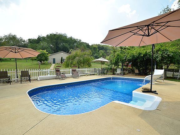 Private Drive. Dynamic open floor plan in this spotless ranch with wall of windows & doors to outdoor patio and living space w/private 4.1 acres and gorgeous 28x14 in ground pool. Superb Chef's Kitchen overlooks spacious dining room & breakfast room opening to 15x15 covered patio and vaulted living room ceiling with rich woodwork. Lower level entertaining w/18x16 kitchen, family room & 2 bedroom added living space or office w/patio access. Detached 3-car garage 40x32. Everyday feels like a vacation here!