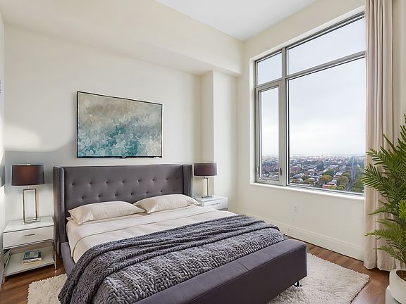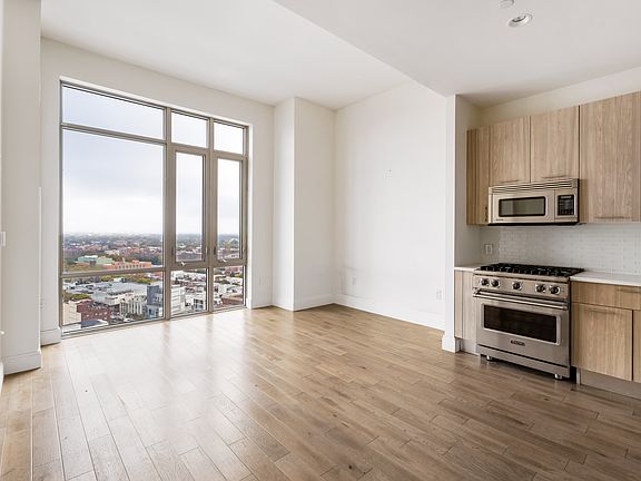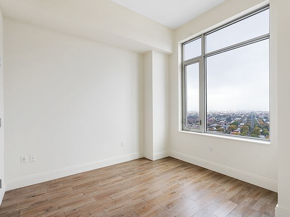 Unit 21A is a one-bedroom, one bathroom, Northern facing unit with unobstructed views of the Manhattan skyline. With ceiling heights of ten feet or more and sweeping floor-to-ceiling windows, airy living areas highlight endless ocean and city views. Beautiful kitchens are crafted with custom Italian cabinetry and honed quartz countertops. Sleek stainless steel appliances include a professional-grade Sub-Zero refrigerator and the Viking appliance suite including oven, stove, dishwasher, and wine refrigerator. All homes are prewired for the latest high-speed technology and include vented GE washers and dryers. Master bathrooms are encased by pristine Carrara marble, with custom Italian vanities that feature Kohler sinks with Grohe hardware. Adjacent to the vanity, a mirrored medicine cabinet provides convenient storage for everyday necessities. 1 Brooklyn Bay presents a new vision for Brooklyn living. Rising amid the historic waterfront community of Sheepshead Bay, the one- to four-bedroom condominiums emphasize exceptional views of the Atlantic Ocean, New York Harbor, Manhattan skyline, and beyond. An impressive 33,500 square feet of indoor and outdoor amenity space includes a spacious double-height attended lobby, a high-performance fitness center with a yoga studio, a children's playroom, and a resident lounge with a fireplace and dining area. The lounge opens onto a loggia leading to the outdoor swimming pool and surrounding sundeck with lounge chairs and cabanas. Beyond the pool area, the lush landscaped grounds accommodate a bocce court and multiple barbecue grills. On-site parking, bike storage, and a dog run are also available. 1 Brooklyn Bay delivers a lifestyle of superior quality and leisure, offering residents a standard of comfort and convenience unmatched in Brooklyn.