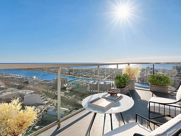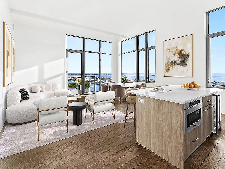 Located on the 29th floor of the beautifully designed One Brooklyn Bay Condominiums, you'll love the views and space Residence PH29C has to offer. This sprawling corner unit is an impressive three-bed, three-bathroom penthouse with multiple private terraces off the kitchen/living room and primary bedroom. Spanning 1,900 SF with over 11 ft tall ceilings, dazzling sunlight shines through the floor-to ceiling windows providing a warm balance to this contemporary home and panoramic views stretching from Manhattan all the way to the Atlantic Ocean. The wide plank oak floors perfectly complement the stunningly designed open kitchen. Created with a Chef in mind, the massive granite countered island, top-of-the-line appliances (Viking and Subzero) and incredible view of the Sheepshead Bay will make cooking and hosting a delight. The luxury amenities go beyond the kitchen. The home has a fully vented, oversized washer and dryer, a central heating cooling system, loads of storage in addition to walk-in closets, en-suite spa like bathrooms with soaking tubs, frameless glass showers and double vanities. Two parking spaces are available at an additional cost. Built in 2018, this thirty-story contemporary luxury Highrise overlooks the Atlantic Ocean and the New York Harbor- adding new level of views to the historic waterfront community of Sheepshead Bay. The 33,500 square feet building amenities include: a high-performance gym with bike and yoga studio, a children's playroom, an outdoor swimming pool, a sundeck, bike room and multiple recreation areas with barbecue grills for summer gatherings. One Brooklyn Bay is minutes away from local shopping, dining, marinas and nightlife and close proximity to Sheepshead Bay waterfront, Manhattan Beach and Marine Park. B/Q trains, bus services and nearby parkways will quickly get you anywhere you need go. **FOR A LIMITED TIME THE SPONSOR IS COVERING 50% OF THE COMMON CHARGES FOR THE FIRST 3 YEARS AND 100% OF THE REAL ESTATE TAX FOR THE FIRST 3 YEARS..**