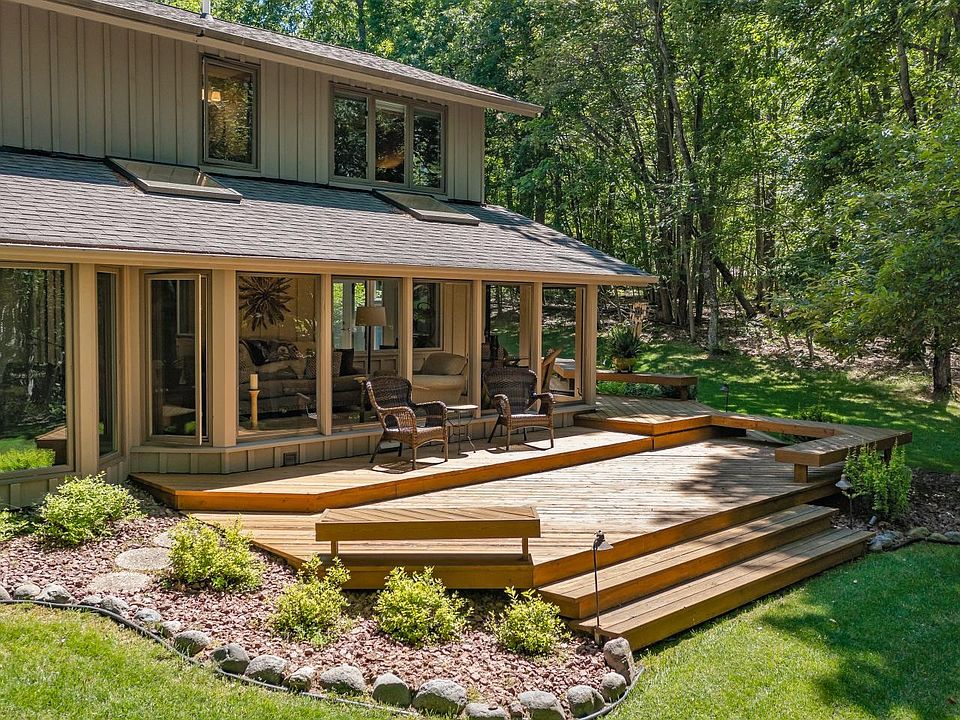 Have you been swinging & missing trying to find that move in ready Eagle River Chain home? We are calling batter up because your home run is here! This 3BR/2.5BA 2,500+ sq. ft. house w/2 2-car garages sitting on 1.7 acres on Voyageur Lake has arrived. It been meticulously maintained, loved, & updated throughout the years but its time for someone else to carry the torch. The year round enclosed porch overlooks the expertly landscaped lawns, open sun deck & firepit area. The main level houses the Chefs kitchen, spacious living room w/fireplace, formal dining area & BA while the upper level is the sleeping floor w/the owner En Suite w/full private BA, additional 2 BRs, & 2nd full BA. In addition, the basement features a big rec room sauna, & large laundry room w/a sink and shower. Other notables are spectrum internet, privacy, blacktop circle driveway, & pier. There is absolutely no need to compromise w/this home, its time to swing for the fence & submit your offer!
