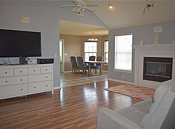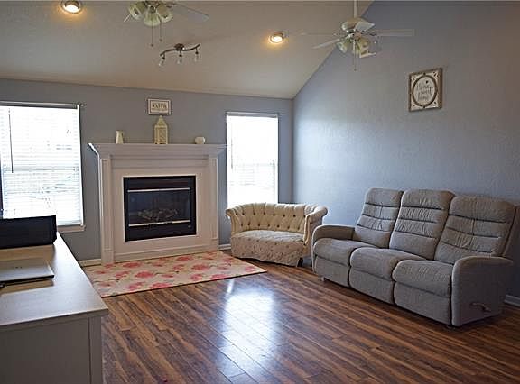 Unique floor plan has 3 bedrooms 2 full bath with a bonus room! One of the things the sellers loves about their home is the floor to ceiling windows on the South side of the home. It lets in beautiful sunlight brightening up their home! They also love the kitchen! It is a cooks dream with an abundance of cabinets, spacious countertops & a large pantry! This home has a partial open floor plan that allows you to view into the living room too! Dining area holds a large table with extra room to spare! Living room has cathedral ceilings & electric fireplace. Master bedroom is spacious & has walk-in closet with an en-suite that has double sinks & gorgeous wooden custom cabinets. Hall bath is roomy! Both bedrooms are nice size with large closets for extra storage. Off kitchen is a sunroom turned into another usable space for practically anything you can imagine. The 2 car garage has a SPACIOUS tornado shelter that stays! Backyard is fenced in & is large for backyard bar-b-ques, a garden & plenty of room for kiddos or pets to play! This home has it all for the perfect family or for the perfect starter home!