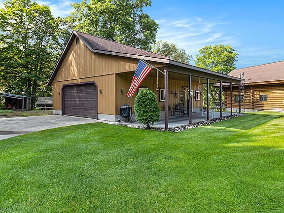 Beautiful Log home with 197 ft of frontage on the Pentwater River! This home has a comfortable floorplan with an open kitchen/dining area, spacious living room with vaulted ceiling, main floor laundry, bedroom and bath. The upper level consists of the primary bedroom with ensuite. The finished walkout, lower-level has a cozy field stone gas fireplace, family room with gorgeous views of the river and huge storage area. There is an extra 26x28 detached garage with a 12x28 heated workshop and tons of storage space. High efficacy water heater/boiler, skylights, spacious deck, large covered patio, underground sprinklers and so much more. Peaceful, serene setting with lots of wildlife and excellent fishing!